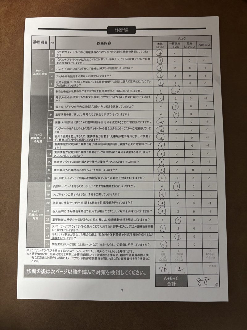 大切なお客様情報、店の情報を守れるように、100点目指します!!